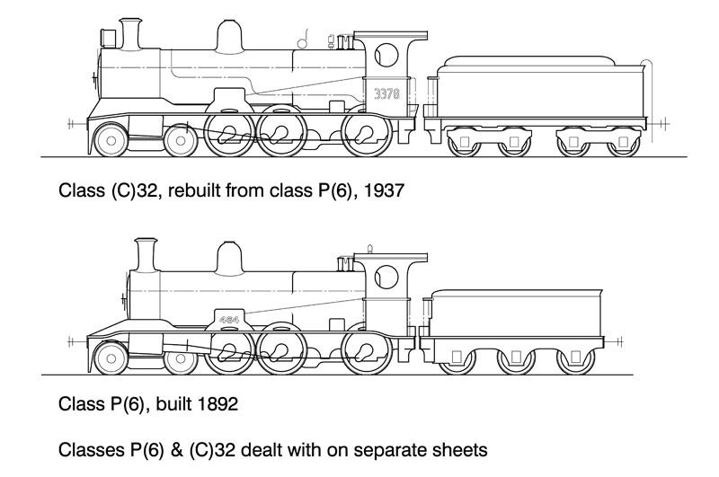| P(6) | 4-6-0 | 1892 | Passenger | Beyer Peacock, Baldwin, Clyde, Dubs | B/P loco with 6 wheel tender, see also (C)32 | ||||||||