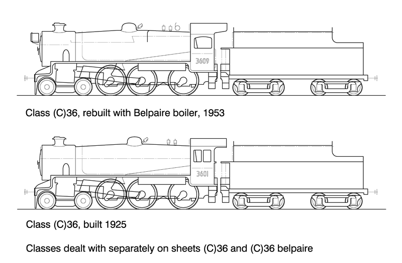 | (C)36bel | 4-6-0 | 1953 | Passenger | Converted from (C)36 | Fitted with belpaire boiler | ||||||||