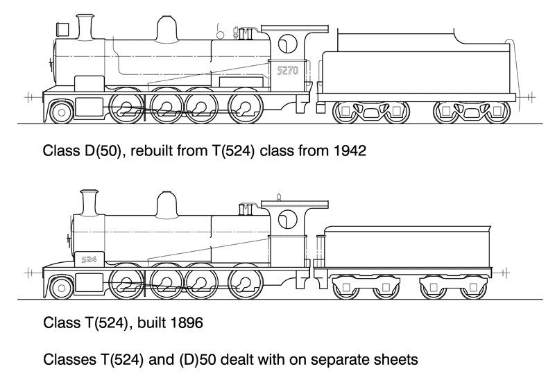 | (D)50 | 2-8-0 | 1911 | Goods | Converted from T(524) | With standard boiler and standard tender | ||||||||