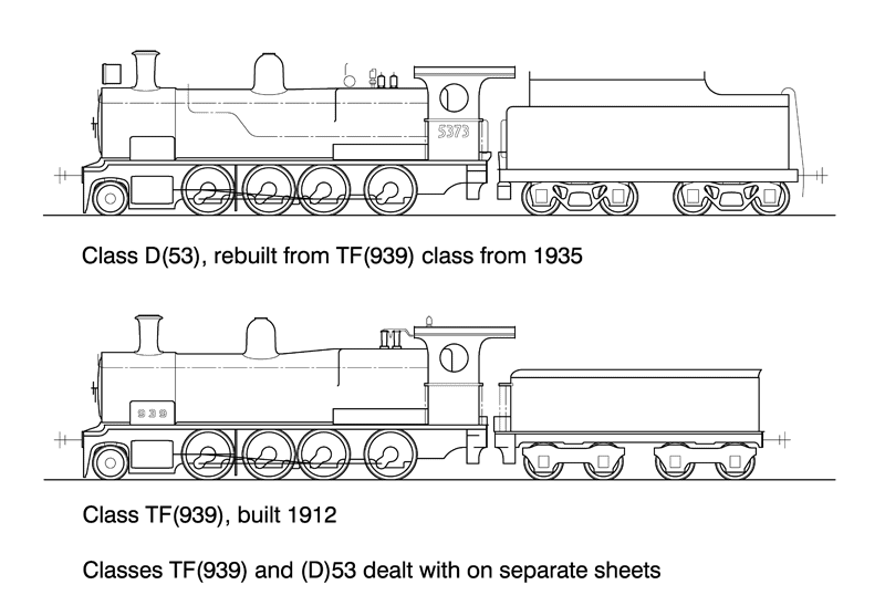 | D(53) | 2-8-0 | 1935 | Goods | Converted from TF(939) | With standard boiler and standard tender | ||||||||