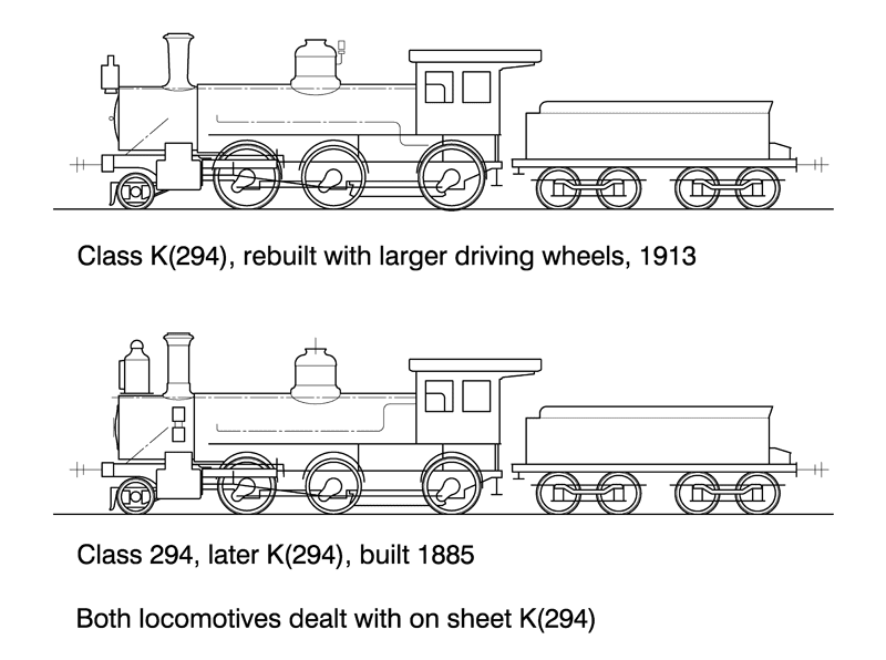 | K(294) | 2-6-0 | 1885 | Goods | Baldwin | Also shows 1913 rebuild | ||||||||