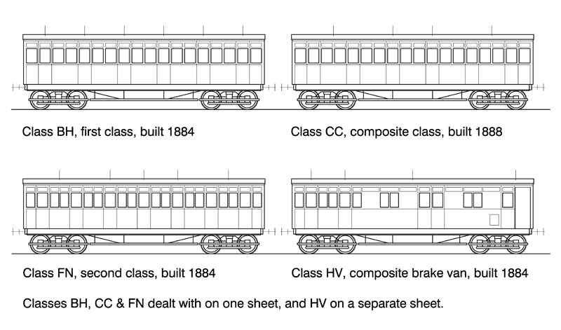 | BH/CC/FN | 1884 | 'Redfern' bogie carriages, 1st class, composite & 2nd class | |||||||||||