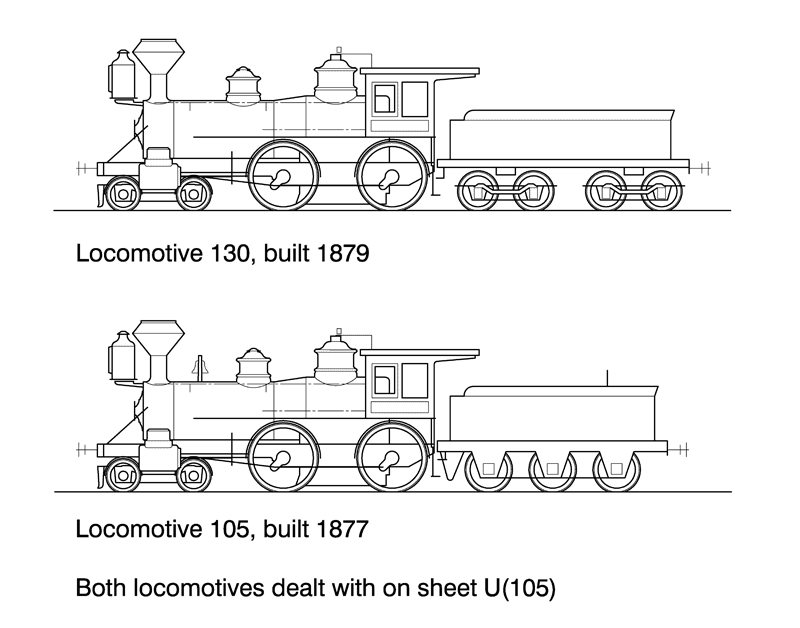 | U(105) | 4-4-0 | 1877 | Passenger | Baldwin | Both locos shown | ||||||||
