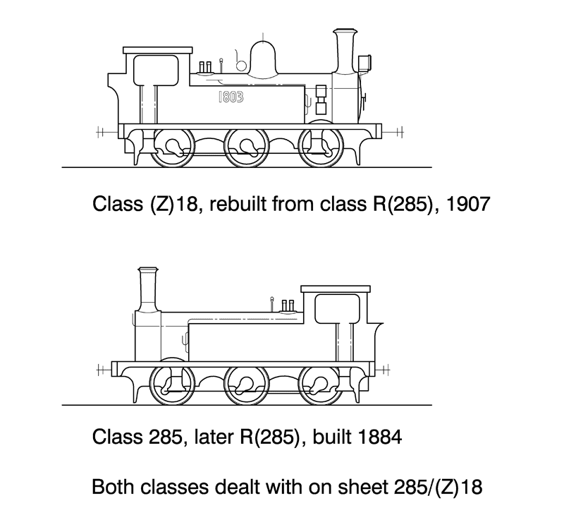 | (Z)25 | 2-6-0 | 1901 | Goods | Converted from 20 | Wooden & cutaway cabs | ||||||||